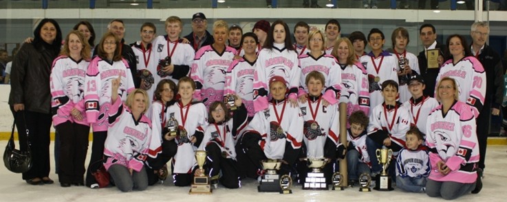 April 3, 2009 Under the category of better late than never, please say hello to this handsome crew, your MOHA peewee red playoff champions, the Epipen Wolfpack. Miles and miles of smiles. Again, congratulations!