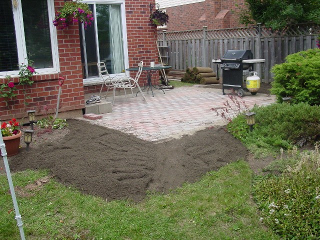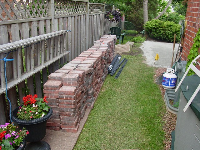 July 4, 2009 Just for the record, the patio is done. Still some landscaping to do, but it is BBQ-capable. Pad and I turned this pile of paving brick: