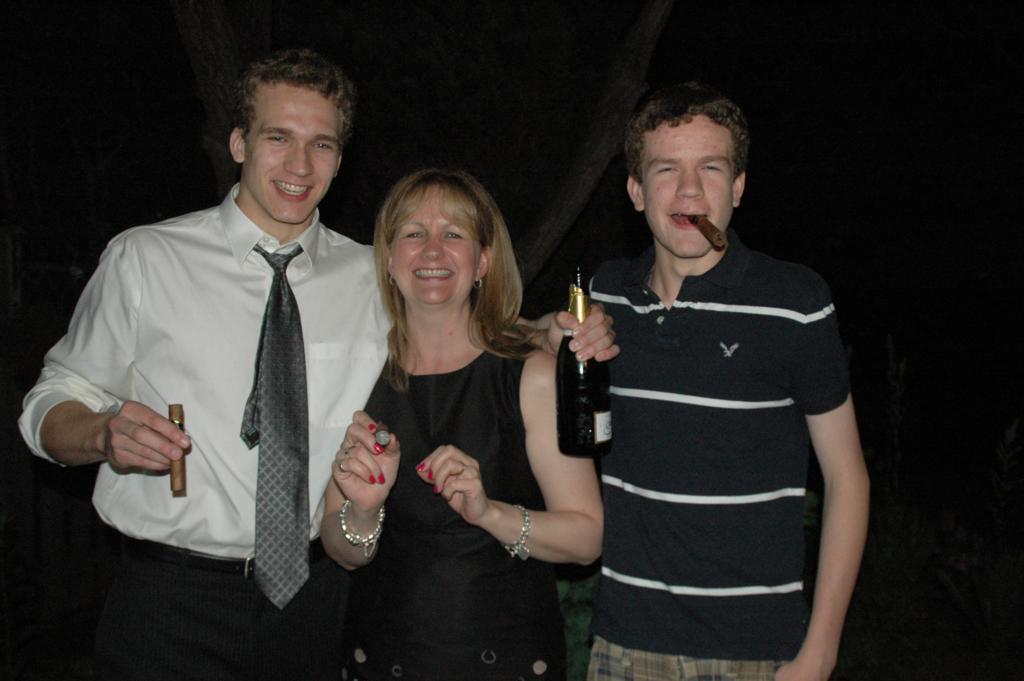 The cigars were props. The bubbly was real but distributed judiciously. His godmother's visit, with Uncle Gregg and the cousins, set the bar high for Chris, who says his grad party will be in Vegas. If commencements are supposed to be about beginnings, then he's truly off and running. It was a fun night and kudos to Laura for making it spectacular. And the morning after, London officially invited him back to their 2011 main camp. A pretty good 24 hours all in all.