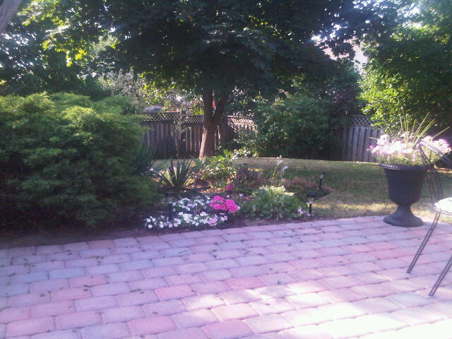 July 20, 2011 So much for all that stuff I said about no humidity. I was watering the garden last night and the condensation was dripping off the hose, which is the second best indication you can get for measuring humidity. The best indication is whether the condensation running off your beer bottle becomes a hazard to the various electronics you have on the patio table next to it. And in my case, last night the answer was a definite yes. Every time I picked up the bottle the condensation accumulated around the bottom of the bottle fell off and dripped all over me. The only solution was to not put the bottle down and . . . well, you do the math. - - - I was sitting there trying not to drown in the tsunami of beer-bottle and watering-hose condensation, and wondering if I would actually do damage to the electronics on the small table next to me. And then it occurred to me: gee, I really take a lot of hardware to the patio with me when I “relax.” Blackberry? Check. iTouch? Check. Laptop (usually only for the morning shift, but sometimes in evenings.) Check Portable phone? Check. Sony eReader? Check. That’s enough home electronics to start hearts fluttering at Future Shop and Oakville Hydro. - - - This morning I’m not actually writing this from the outdoor home office (pictured below) – aka the patio with wireless.