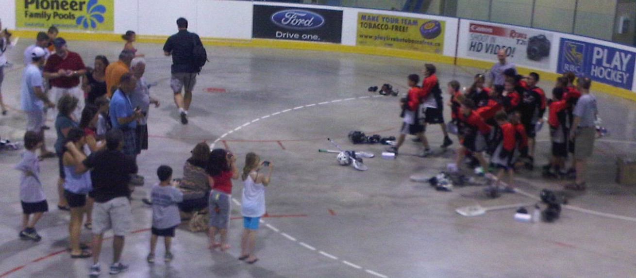 June 28, 2011 It’s been a hectic couple of days and it’s not looking like it will get any better, so I’ll blog briefly when I can. Laura and I were both more or less catatonic with fatigue after the wrap-up of the Brian Kruse Memorial House League Tournament, which marked the end of Oakville’s house league lacrosse season on the weekend. Laura has been co-ordinating this event, and its predecessor “Gala Day”, for literally the last 10 years. She says this weekend was her farewell performance. As it always is, the wrap up to the season was a lot of fun, even if my spouse was MIA for virtually the entire weekend (which is why I was at the rink all day Sunday and half of Saturday, because otherwise I would never have seen her.) From peanut through midget all of the championships were settled, many in exciting fashion. My role was “fixer” for the day. Play O Canada. Be the shot clock timer for 10 minutes. Deliver shirts and trophies to the Blue rink. Take pictures. Play O Canada again. And again. And again. It all went very well, and I was proud of my small part and Laura’s big one. It takes an army of volunteers to make something like this work. We had a good army and thanks to all of them. A couple pictures below from my BB.