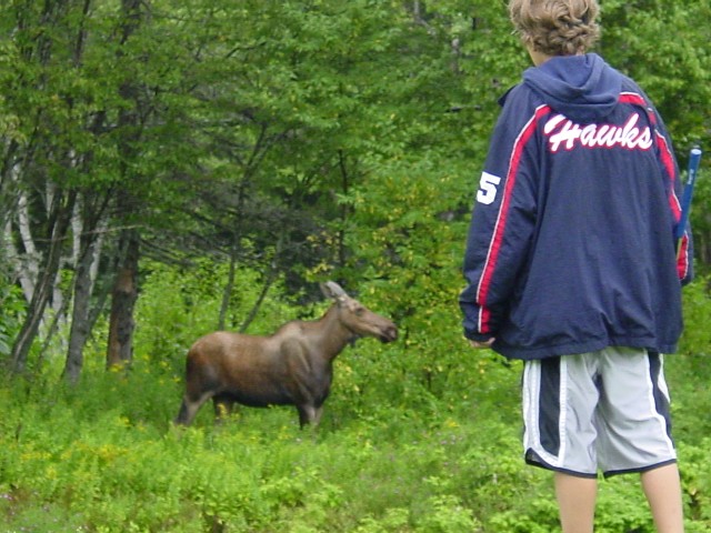May 29, 2009 Welcome to Friday, and welcome to Vacationland. No, I don't mean the state of Maine, a wonderful corner of the Excited States that sports that moniker on its vehicle plates. No, Teamoakville -- or at least its proprietor -- is taking a few days away from the office to just do nothing. Well, not nothing exactly, but less work than usual. Me and the boys will be solo for a few days so I get to hang out with them and reintroduce myself to the Swiss Chalet delivery guy. Blogging will no doubt be more inconsistent than normal, but I will be around. Just keep hitting F5! - - - Archie is asking Veronica to marry him? OK, let's set aside some of the usual reality check we'd normally apply, like: -- Archie is virtually unemployable as he's be in high school for more than half a century -- Everyone knows the red headed guy ends up with the blonde -- His band sucks. So what's with the marry-off-the-guy-with-lines-on-his-head plan? I dunno. Maybe they just want to sell more comics? Ya think?? I read Archie when I was young -- like eight or nine or 10. I remember one year I was at the old Simpsons department store in Halifax, Christmas shopping with my dad. It was just the two of us, which is odd in its own right. But for whatever reason my father bought me one of those Archie Digest comics you see now at all the supermarket checkouts. I can't remember why he did that, but for some reason it has always stuck with me -- the whole scene of Christmas and whatnot. Anyway, when I think of Archie, that's what I think of. And Veronica may be rich but she's fickle. He should have picked the blonde. My guess is this ain't over. And naturally, you can read more here. - - - The Betty-Veronica thing leads to two major sidebars for you to consider on this May weekend. First, all women in the world are either Bettys or Ronnies. Bettys are women who are basically solid character babes; go the extra mile. They are usually of working class roots, though they often rise well above that caste by dint of their smarts. They are generally patient and see the greater good. Ronnies (short for Veronica) are better born, well moneyed and high maintenance (but they think they are not.) They have friends like Betty, only to reassure themselves that they are Ronnies. They have vanity licence plates, dad's money, and marry well (Veronica apparently missed the memo here.) Most of the female population of the world is a Betty or Ronnie. Discuss. - - - The second major sidebar for discussion is well known among men and how it has not made it into a beer commercial yet is beyond me. This conversation has been held in every frat house, every high school locker room, at the 19th hole of every golf course on Earth. And without getting into the details, the three major questions are: 1. Betty or Veronica? 2. Wilma or Betty? 3. Ginger or Mary Anne? It may well be that better book clubs around Oakville discuss at length the various advantages of Archie vs Reggie, or Fred vs. Barney. Or the Professor vs. Gilligan. But if they do, I fear for society. I really do. - - - A local high school rugby player is convicted of manslaughter in the death of a competitor. How this ever got to court I can't imagine. Read more here. - - - Still with rugby, Canada's minister of defence is injured in a rugby match. Peter MacKay broke his arm in a charity match. Do you think Belinda will send a get well card? Ha! I hope his dad still has that dog to keep him company. Read more here. - - - Stanley Cup finals start tomorrow night and it will be done before Canada Day, we promise. Pad is picking the Wings in seven. Chris is picking the Wings in six. I'm picking the Pens in seven. This is a total heart over mind selection. We'll see. Let the mocking begin from other corners of the blogosphere. Or kill some time while the boss isn't looking by reading this off-day story. - - - A loyal correspondent and the best mother in law on the planet points out to Teamoakville that the New York Times has discovered why our family makes like lemmings off the cliff, like swallows to Capistrano, like (enough already!!) or like Nova Scotians missing Nova Scotia every summer and sprint back to the holy sod. The author and his son discovered Daisy -- or whom I presume to be Daisy -- the moose that wanders Highland Links and really doesn't care whether you're putting, driving or walking. You can read the Times story on golf in Nova Scotia here. Below is a photo from a couple of years ago of an Oakville hockey and lacrosse player encountering Daisy at the famous Highland Links.