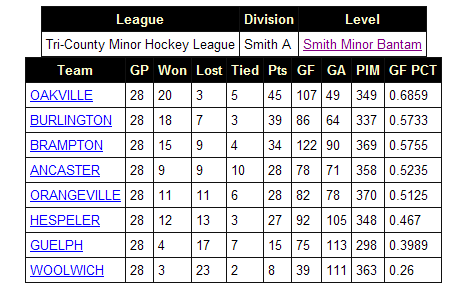 Jan 11, 2007 Final standings in Tri County minor bantam A (only because I know a lot of the parents look here):