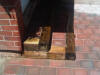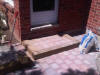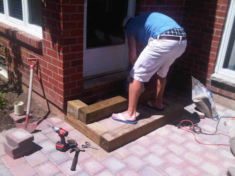 With the heavy work done, Patrick finally showed up. He's dumping screenings into the second step box, which just been secured to the house. |